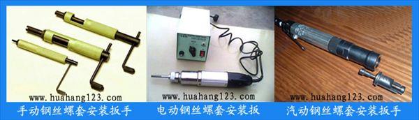 手动钢丝螺套安装扳手:用于将钢丝螺套拧入底座的螺纹底孔中,使钢丝螺套穿越导向螺纹的一部分,逼迫外径收缩以使钢丝螺套扳手的类别根据前端的形状分成T型头扳手和螺纹头扳手。